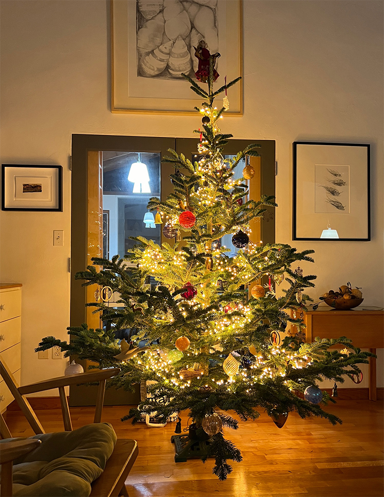 The tree is so lovely- it's really perfect!... Tannenbaum holds a special place in our holiday home. Wishing you a joyous and peaceful holiday season! (Donna NJ)We LOVE LOVE LOVE the wreath. The music is surprisingly weird and cool so we love it too. Thank you. The joy that the tree in CA and the tree here (OMG it's gorgeous) are bringing to all is my favorite part of the season. Released the live ladybug. Gretchen LOL - good one, Gretchen!